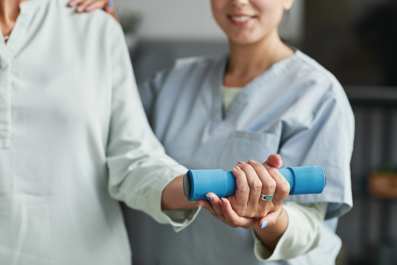 Personne à l'hôpital avec un soignant